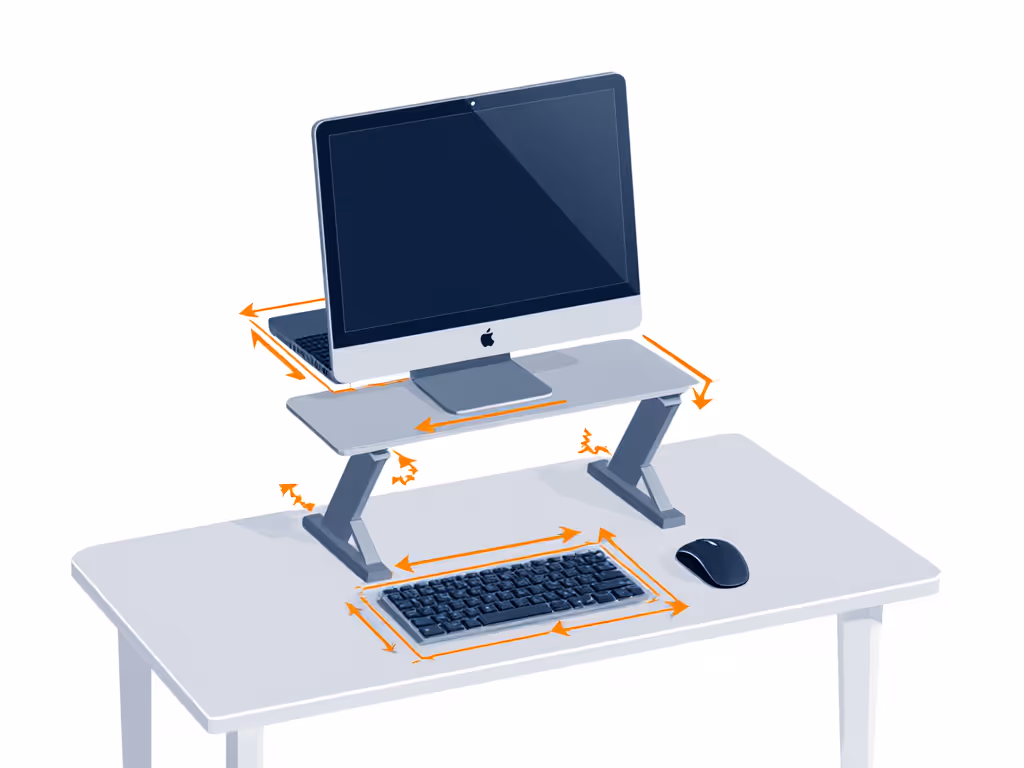 Your stand's minimum and maximum height determine its "comfort range." Calculate yours: from Measurement 1 (eye height), subtract Measurement 2 (desk height). Add a 2-inch buffer for sitting posture variation and standing-desk use if you alternate positions. A stand that adjusts 4-8 inches covers most users; some stands go higher[1][4]. If you're choosing between adjustable and fixed-height designs, see our adjustable vs fixed stand guide for pros and cons.